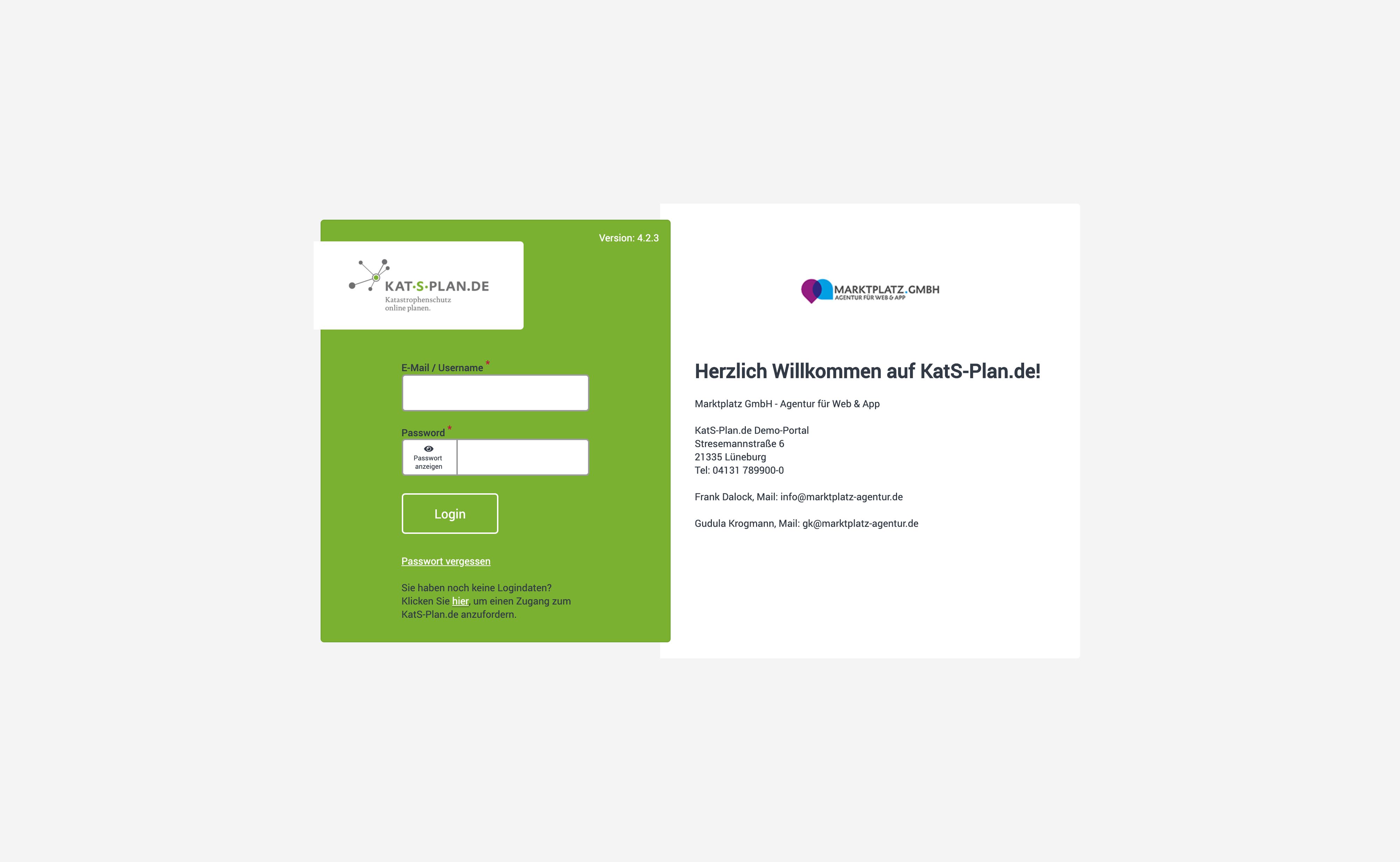 KatS-Plan.de entstand aus enger Zusammenarbeit zwischen der Fachgruppe Katastrophenschutz, Rettungsdienst und Brandschutz des Landkreises Heidekreis und der Marktplatz GmbH. Vorausgegangen ist diesem Projekt eine intensive Überprüfung von bestehenden und alternativen Lösungen für diesen Fachbereich seitens der Universität Lüneburg. In einem sechsmonatigen Evaluationsprozess wurde das Fundament für dieses innovative Projekt gelegt.